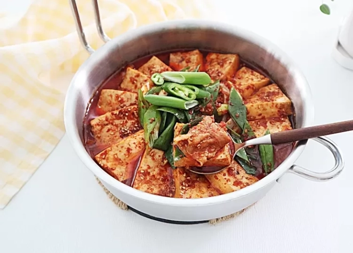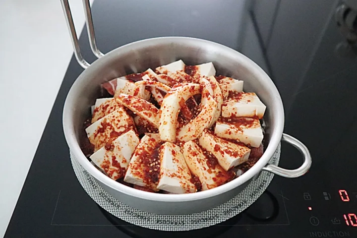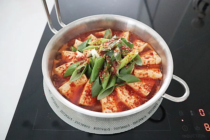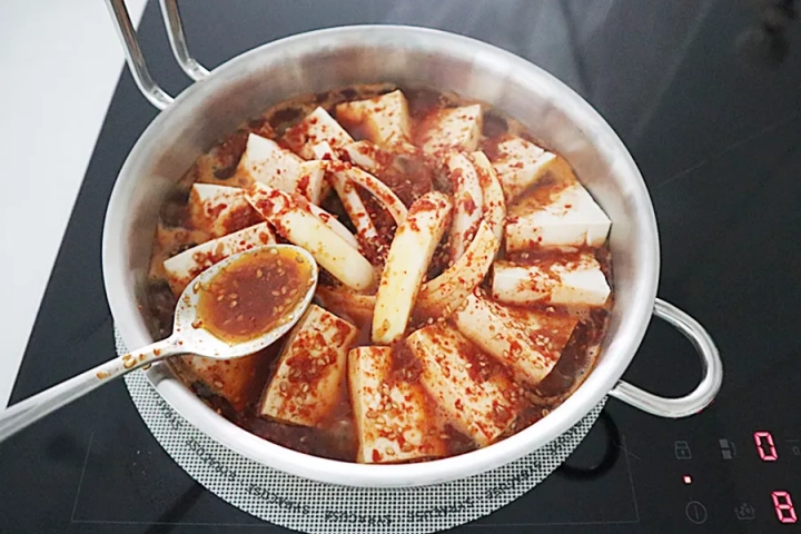 끓기 시작하면 국물을 두부위에 얹어가며 조려주세요.