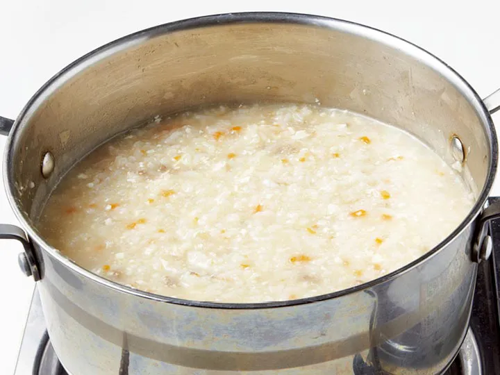 쌀뜨물을 붓고 끓이다가 쌀알이 퍼지면
