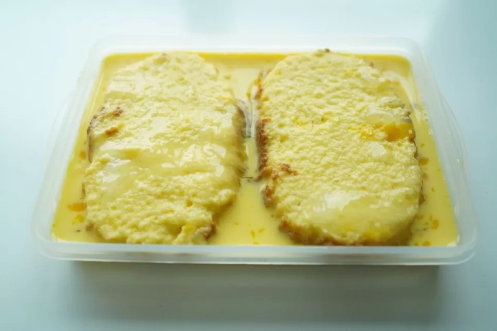 카스테라를 담아주고 달걀물을 부어주세요.