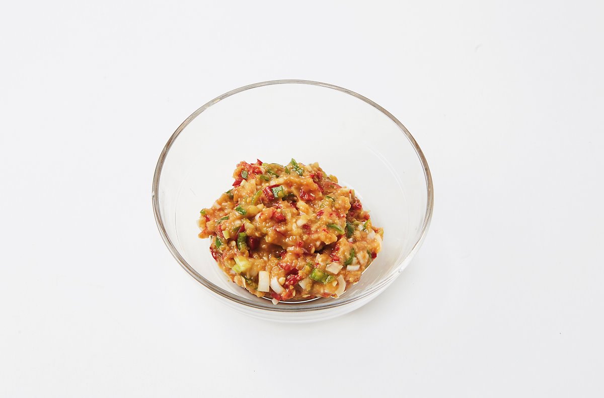 양념장재료에 잘게 썬 대파, 고추를 넣고 골고루 섞어주세요.