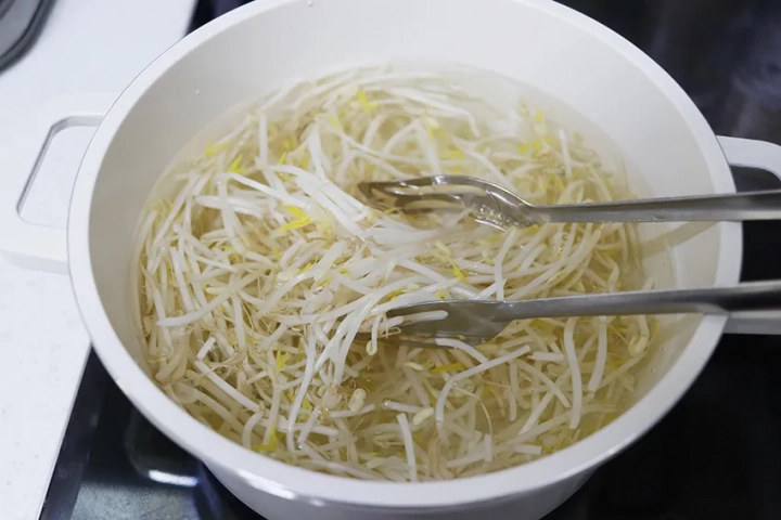 숙주나물을 넣어 뒤적이면서 데쳐주세요.