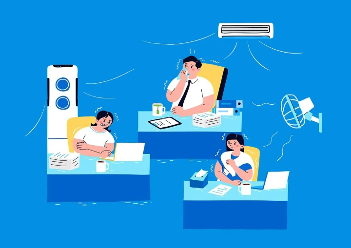 냉방병이란 더운 여름철 환기가 되지 않는 냉방중인 공간에서 오랜 시간 머물 경우 눈, 코 등의 점막 자극증상과 함께 두통, 피로 및 무력감, 집중력장애 등 감기와 비슷한 증상이 나타나는 것을 말한다고 하는데요. 따라서 냉방병은 어떤 질병을 가르키는게 아닌 여러 질환군을 총칭하는 증후군의 일종이라고 합니다.