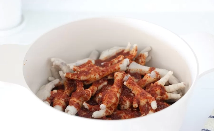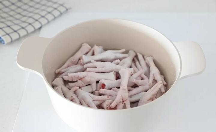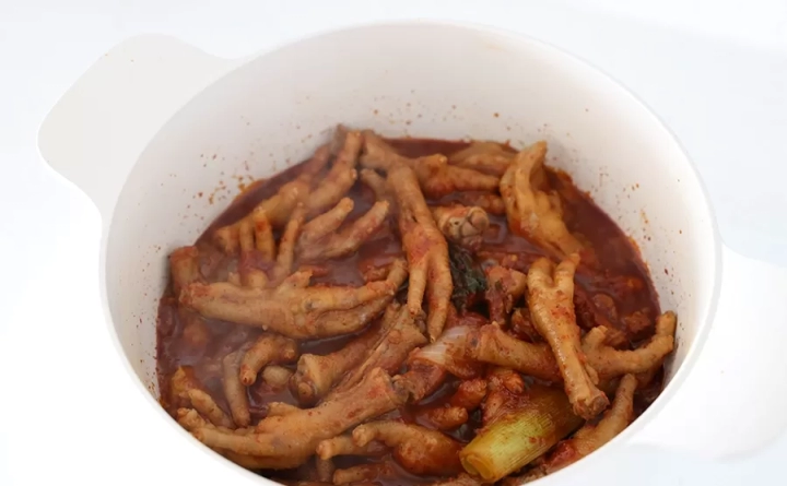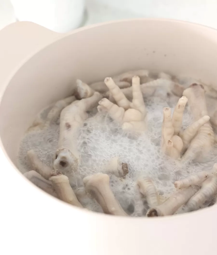 초벌로 삶은 닭발은 깨끗하게 물로 여러번 헹궈주세요.