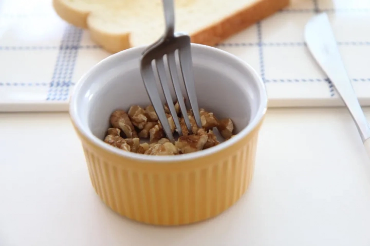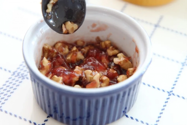 으깬 호두를 딸기잼에 넣어 골고루 섞어주세요.