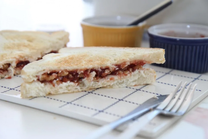 호두딸기잼을 식빵 한쪽면에 취향껏 듬뿍 발라주세요.