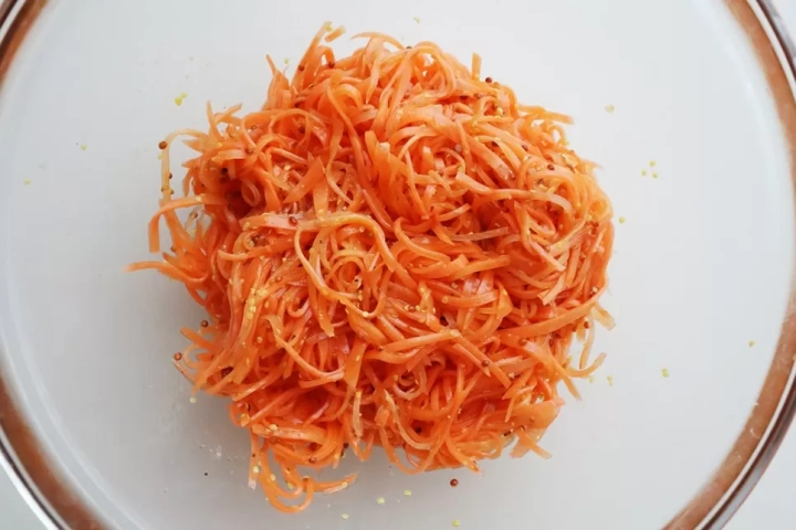 [재료]: 당근 1개, 소금 1작은술, 꿀 1큰술,