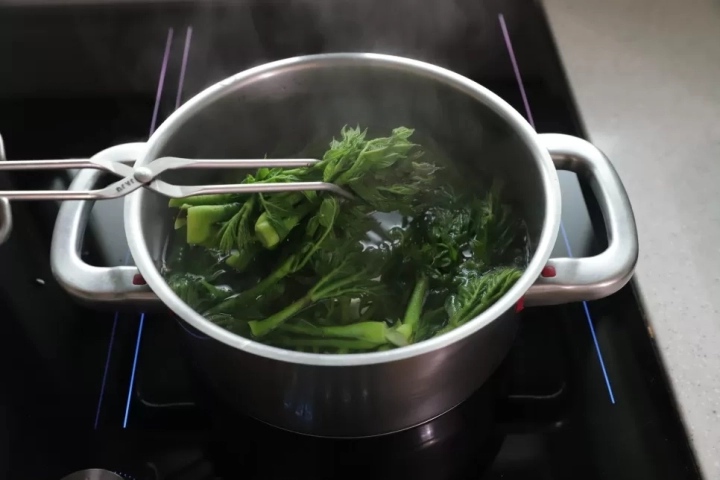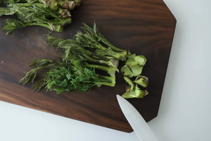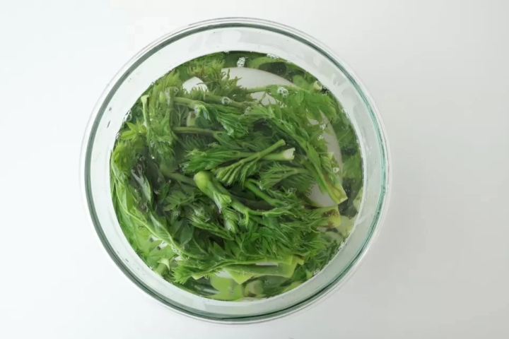 데친 두릅은 찬물에 담가 여러번 헹궈주고 물기를 꼭 제거해주세요.