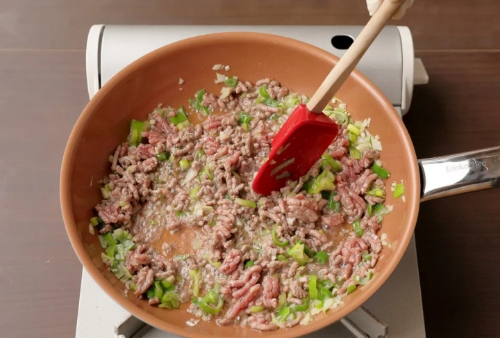 파향이 올라오면 핏물을 제거한 소고기 다짐육을