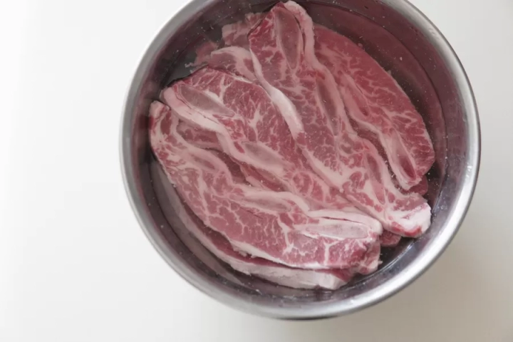 찬물에 1시간 정도 담가 핏물을 제거해주세요.