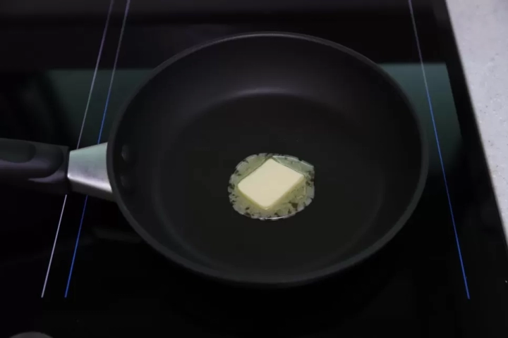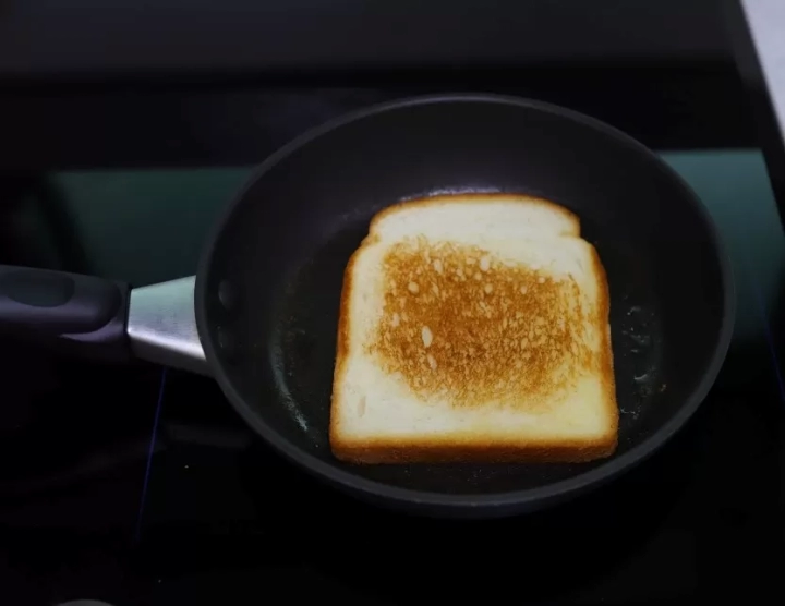 버터가 녹으면 식빵을 앞뒤 노릇하게 구워주세요.