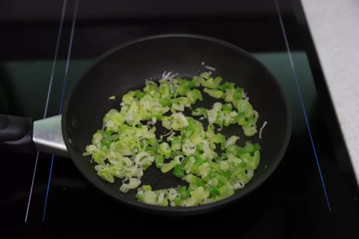 송송 썬 대파를 노릇노릇하게 볶아주세요.
