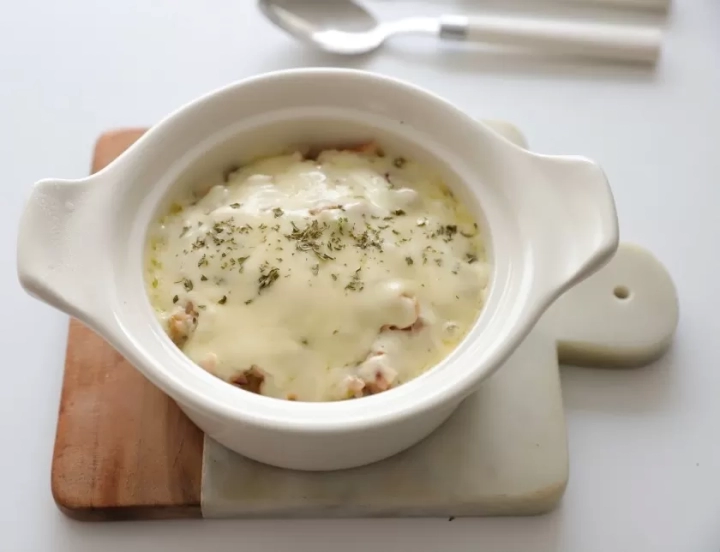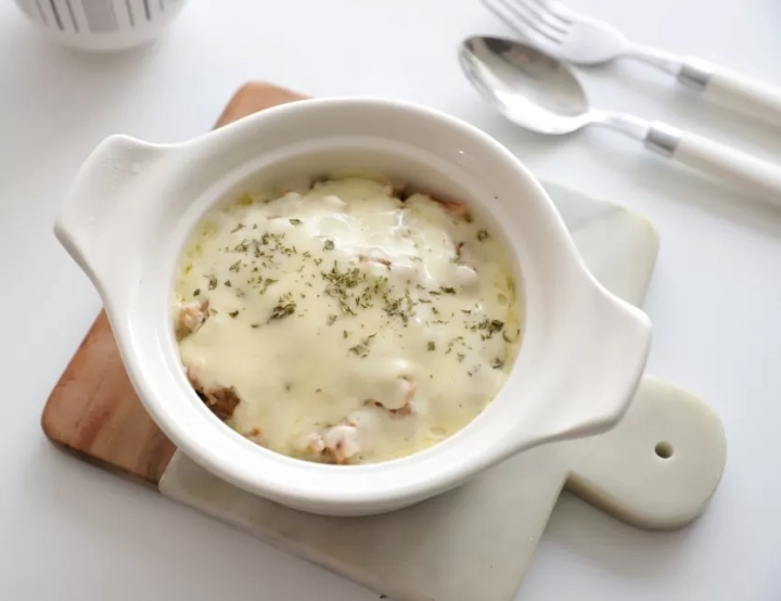 전자레인지용 그릇에 담아주고 위에 치즈 듬뿍 뿌려주세요.