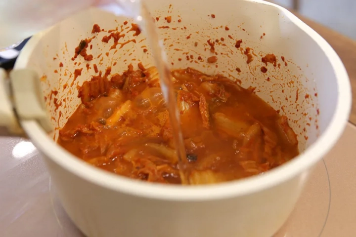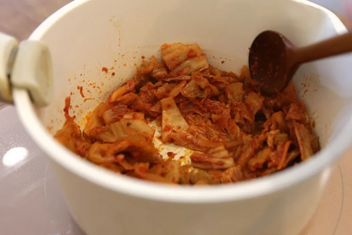 이때 김치를 10분 이상 충분히 볶아주셔야