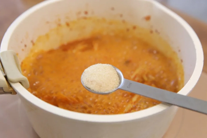 설탕을 넣으면 신맛도 조절 가능하고 감칠맛이 나요.