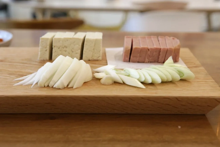 두부와 스팸은 먹기 좋은 크기로 잘라주고