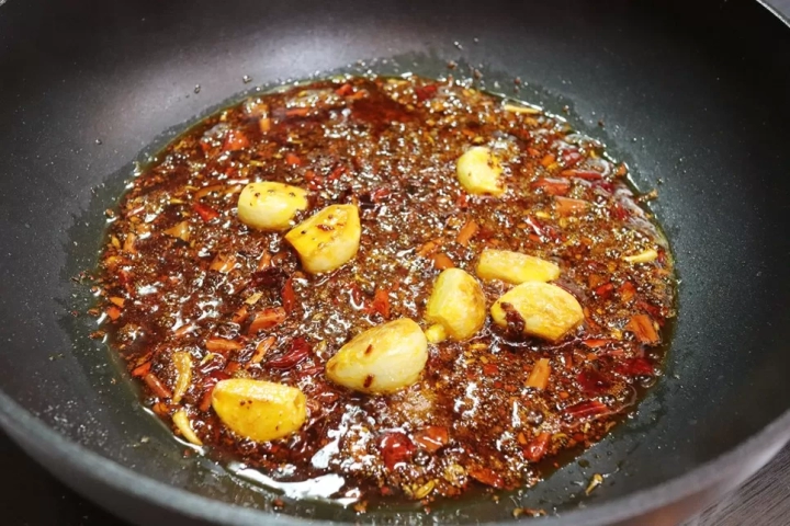 마늘이 노릇하게 익으면 마랴샹궈소스를 부어주고