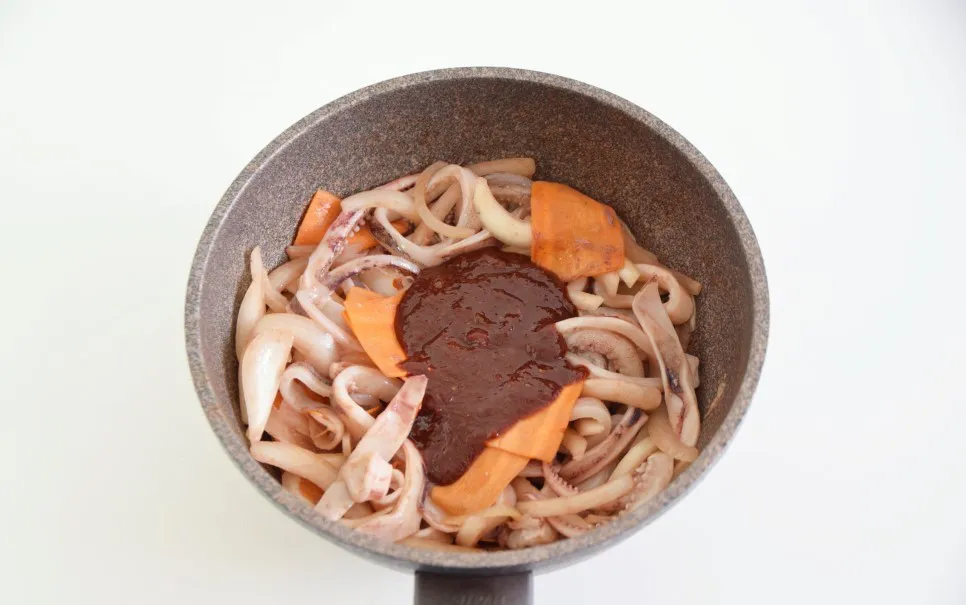 오징어는 오래 볶게 되면 질겨지기 쉬워요.