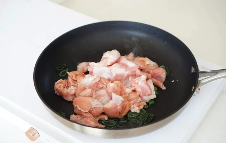 대파 향이 올라오면 닭다리살을 넣고 볶아주세요.