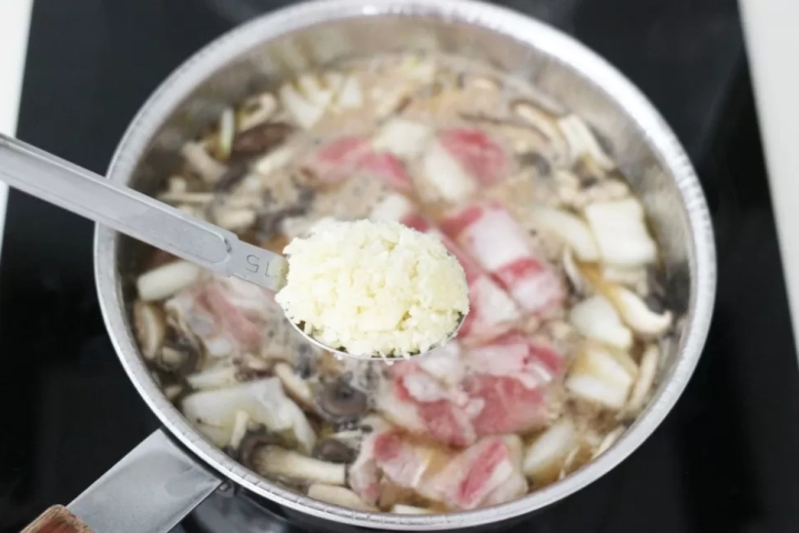 야채가 어느정도 익으면 다진마늘을 넣어주세요.