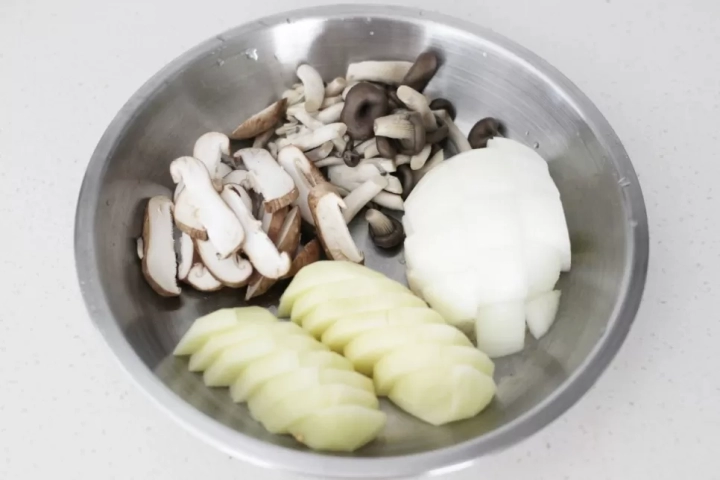 감자, 양파, 버섯은 적당한 크기로 잘라주세요.