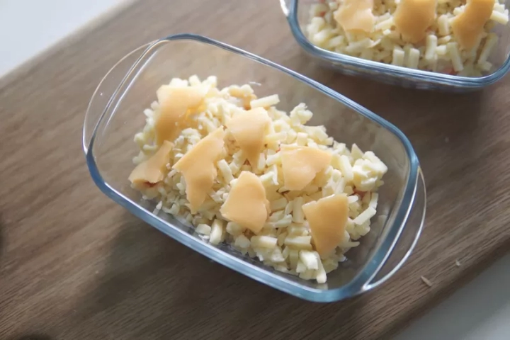 그릇에 담아주고 위에 모짜렐라치즈 듬뿍 덮어주고