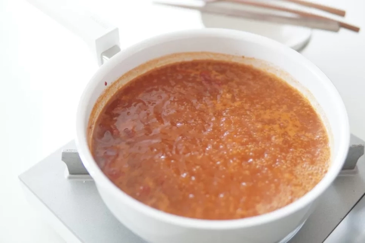 멸치육수에 고추장 2큰술, 설탕 2큰술을 넣어 골고루 풀어주세요.