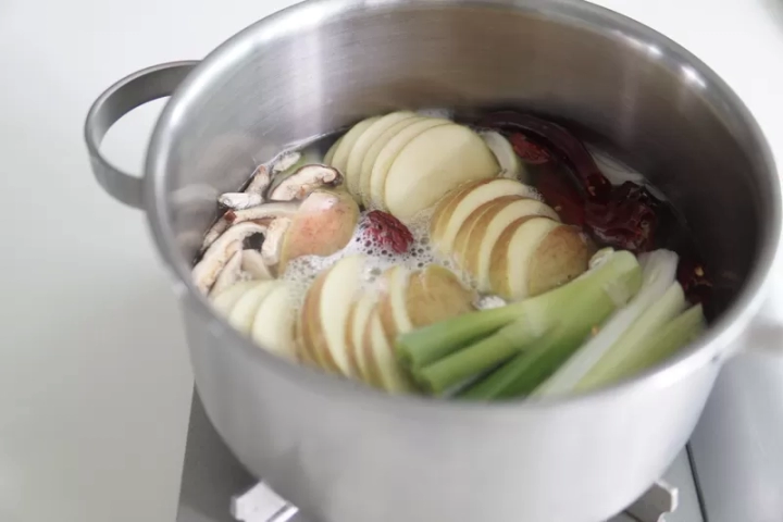 사과, 대파는 적당하게 잘라서 넣어주세요.