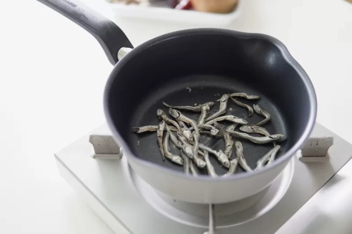 기름 두르지 않은 팬에 국물용 멸치를 넣고