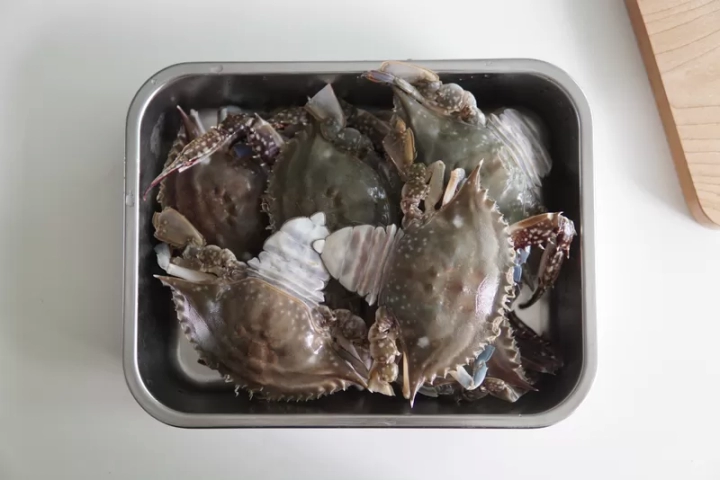그 위에 꽃게를 배딱지가 위로 오도록 담아주세요.