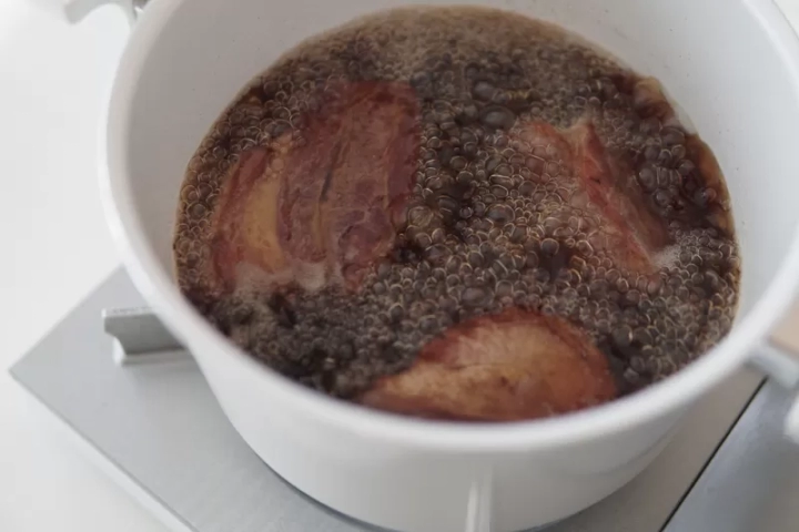 삼겹살을 넣고 뚜껑을 덮어 30분 정도 삶아주세요.