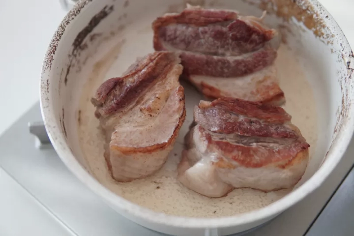 물이 끓어오르면 삼겹살을 넣고