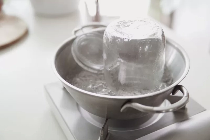 꼭 차가운 물에 유리병을 넣고 끓여주세요.