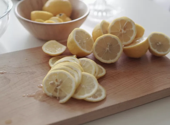 레몬은 베이킹소다를 사용하여 박박 문지르고