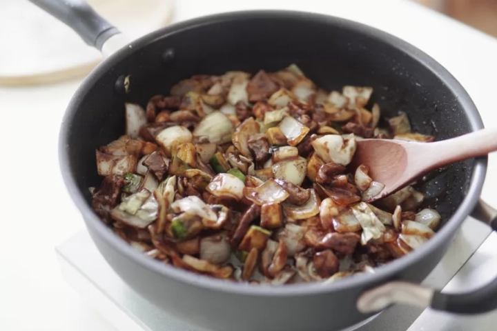 양파를 먼저 넣으면 돼지고기가 뭉쳐지지 않고 잘 볶아진답니다.