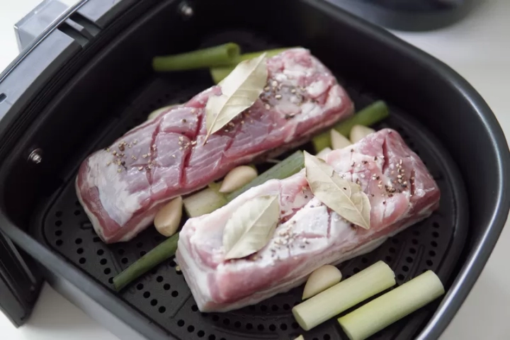 삼겹살은 에어프라이어 크기에 맞게 적당하게 잘라주세요.