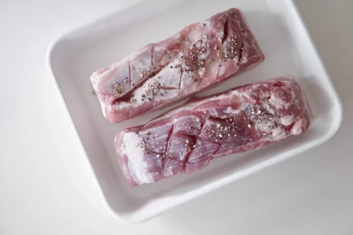 통삼겹에 칼집을 교차로 내어주고