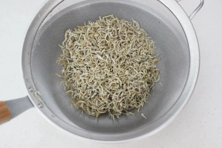 볶은 멸치는 채에 받쳐 탈탈 털어주세요.