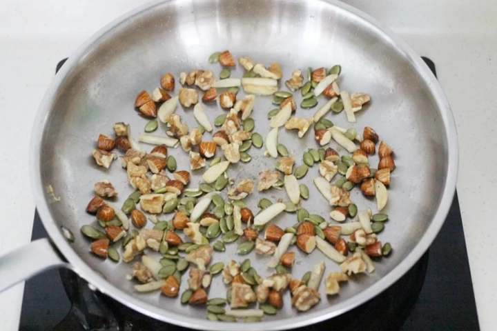 견과류를 넣고 바삭해질때까지 볶아주세요.