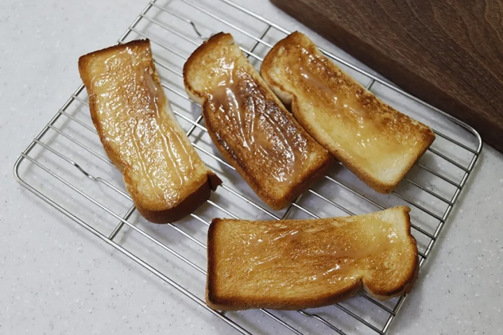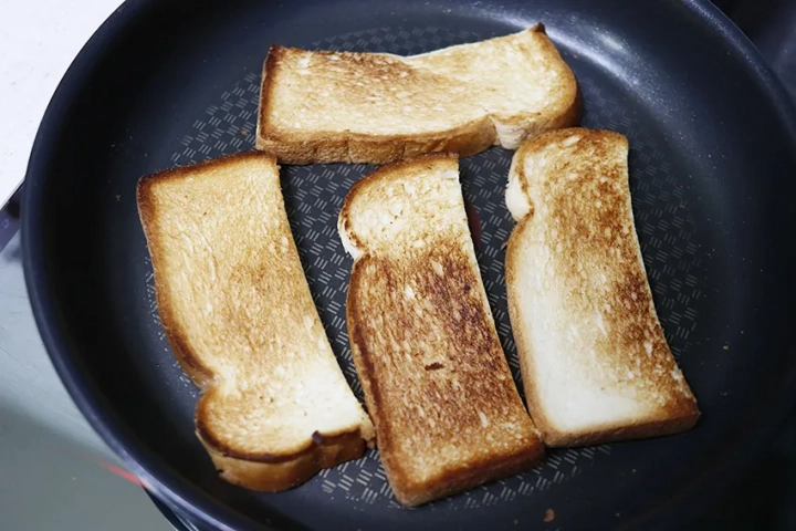 식빵을 앞뒤로 노릇노릇하게 구워주세요.