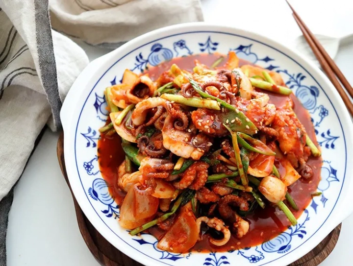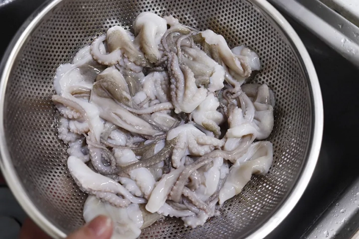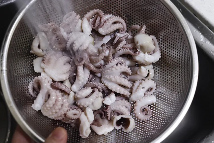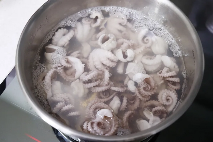 끓는 물에 손질한 쭈꾸미를 20초 정도 살짝 데쳐주세요.