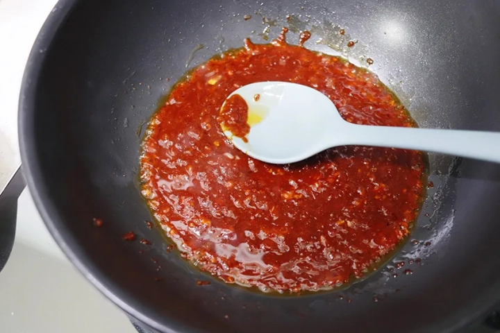 팬에 기름 2큰술을 두르고 양념장을 넣어 볶아주세요.