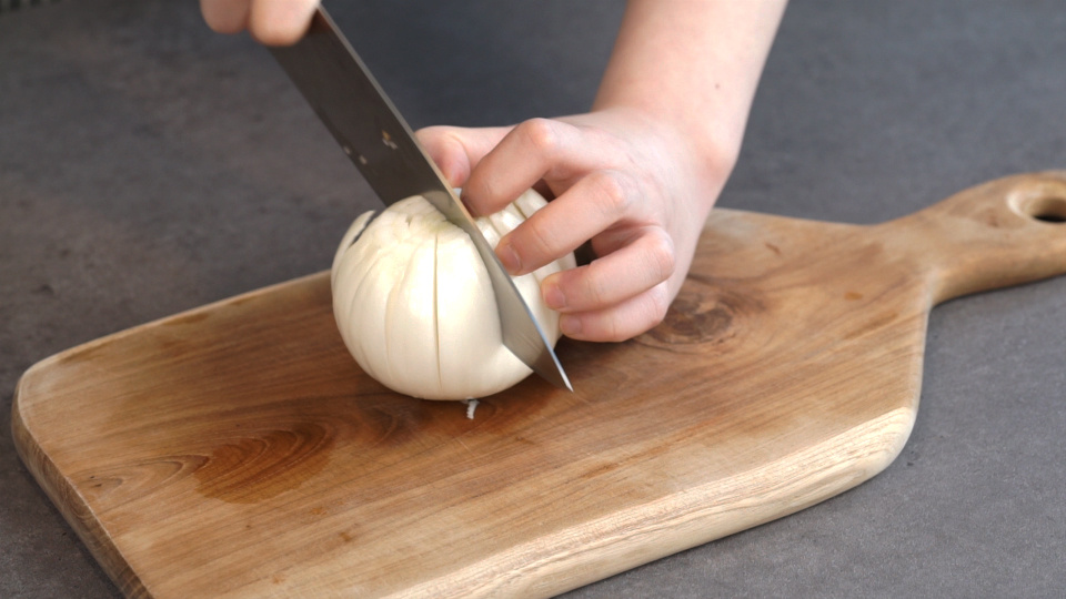 양파는 밑부분이 잘리지 않도록 12등분 해주세요.