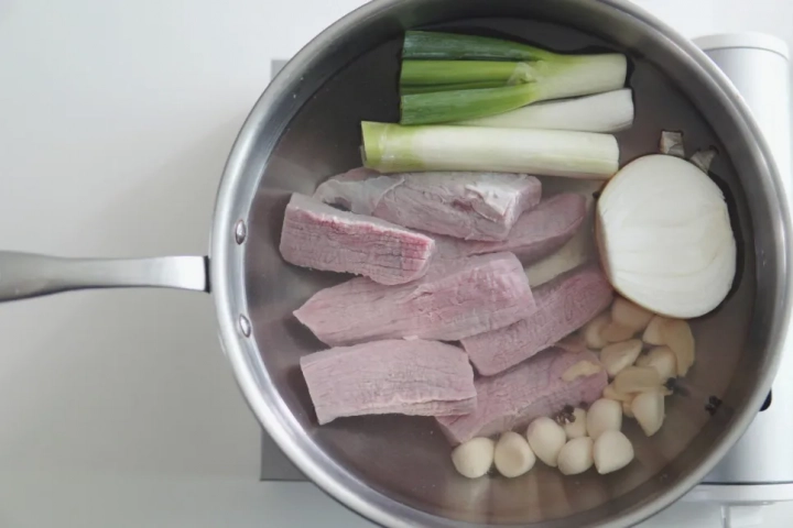냄비에 물을 1400ml 붓고 고기를 넣어주고