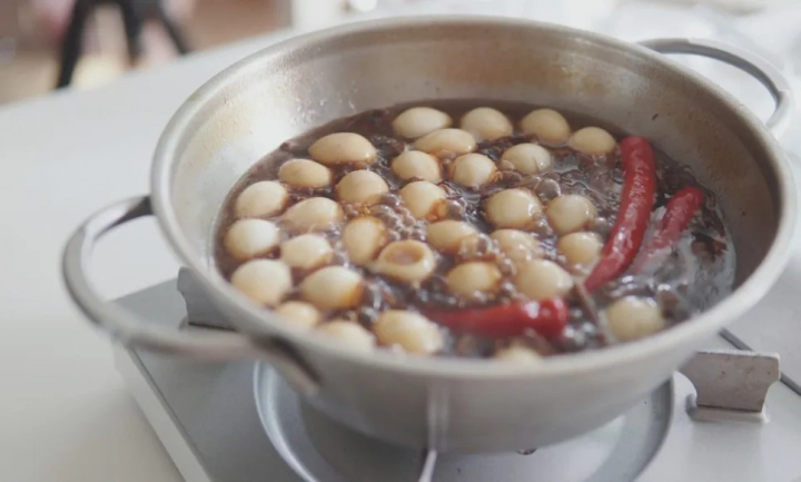 15분 정도 끓인 후 준비해놓은 메추리알을 넣고