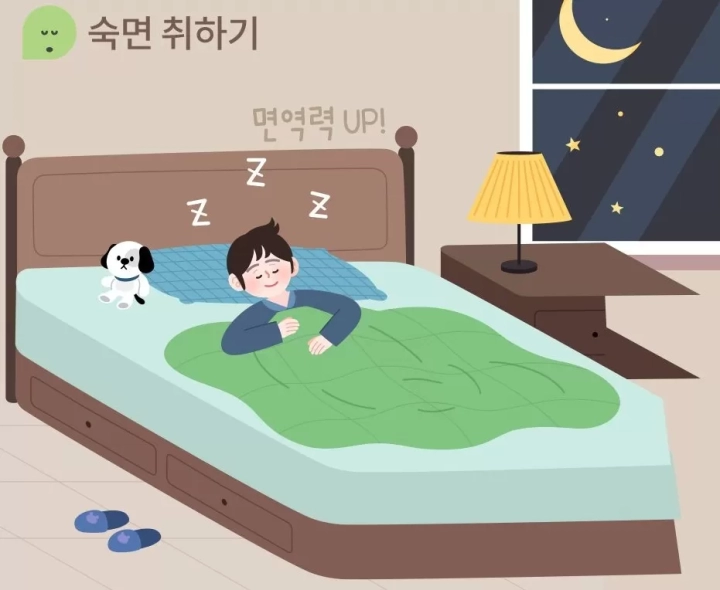 연구 결과에 따르면 일주일에 수면 시간이 2-3시간만 모자라도 인체의 면역시스템이 현저하게 약화된다고 하는데요. 수면 부족은 백혈구 세포와 세포상태(기능), 면역시스템의 각종 화학 매개물질에 심각한 영향을 줄 수 있으며 하룻밤만 수면을 취하지 못해도 인체의 저항력이 크게 떨어질 수 있어 충분한 수면이 중요하다고 합니다.