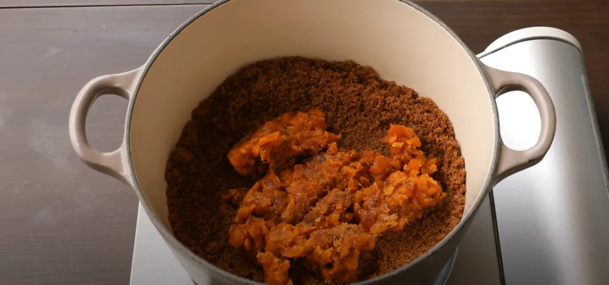 [재료]: 곶감 300g, 흑설탕 300g, 생크림 250g