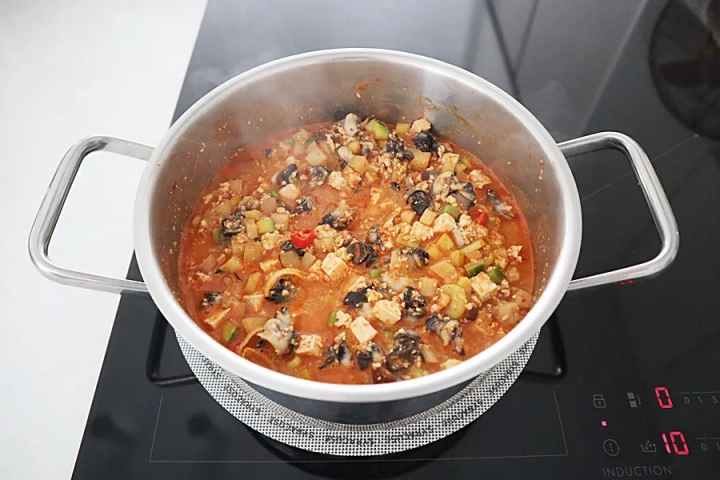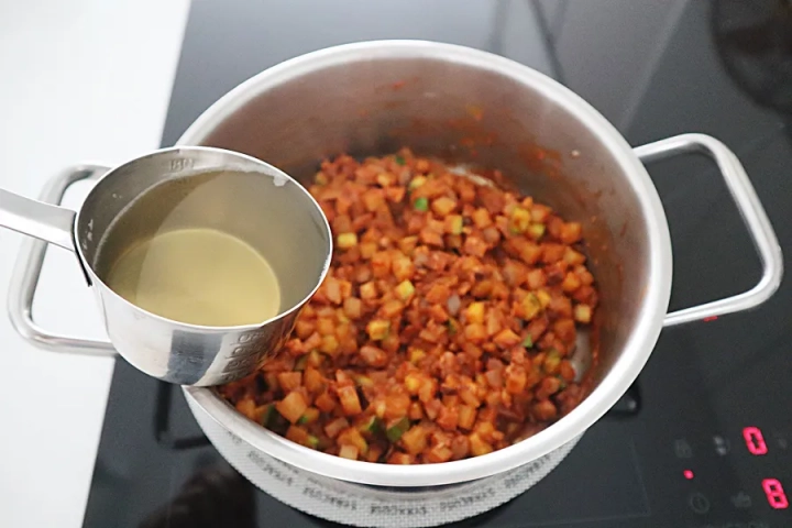 육수를 넣고 끓이다가 보글보글 끓어오르면