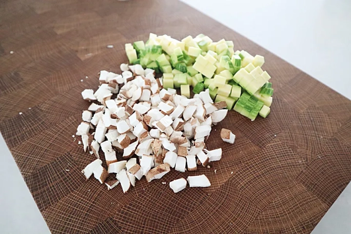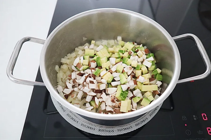 애호박과 버섯도 감자와 비슷하게 썰어주세요.