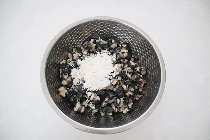 우렁살에 밀가루를 넣고 바락바락 주물러주세요.