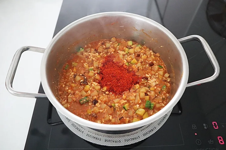두부가 잘 풀어지면 기호에 맞게 고춧가루를 넣어주세요.